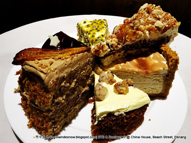 吃完10份食物,我们差点忘了还有 5 块超大份量的蛋糕正等着我们品尝!从右上逆时钟方向: